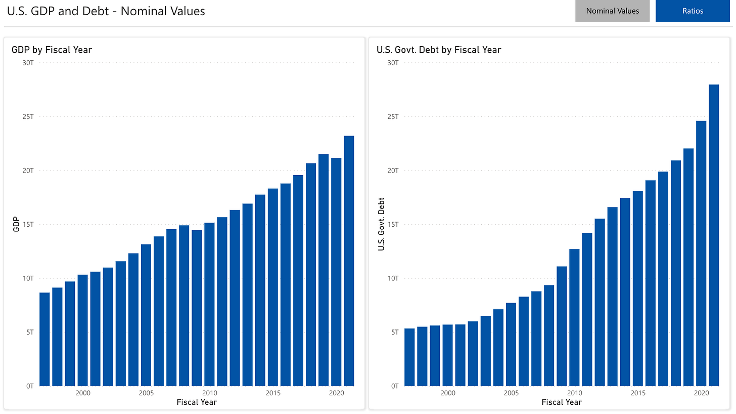 A couple of weeks ago, I walked through some metrics on US debt. Today, I’ve got something related but a little bit different than what I normally post about. That’s because I’ve decided to take data I usually cover and use a new reporting format. Here’s a screenshot of it: