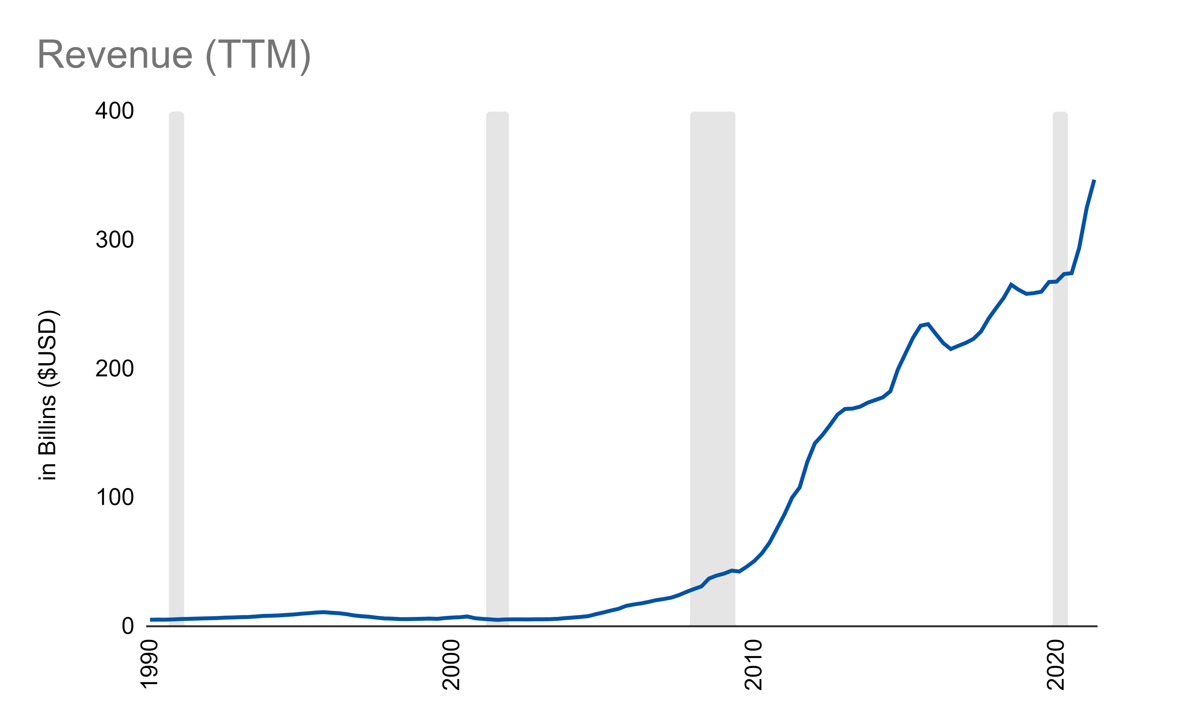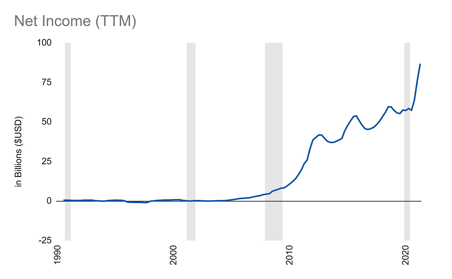 One way we can use all the the metrics we are building out is by highlighting how easy it is to look at a single company for analysis. Take, for example, Apple:
