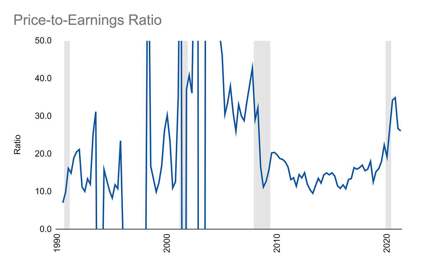 And the resulting price-to-earnings ratio, which was a bit crazy prior to the last ten years: