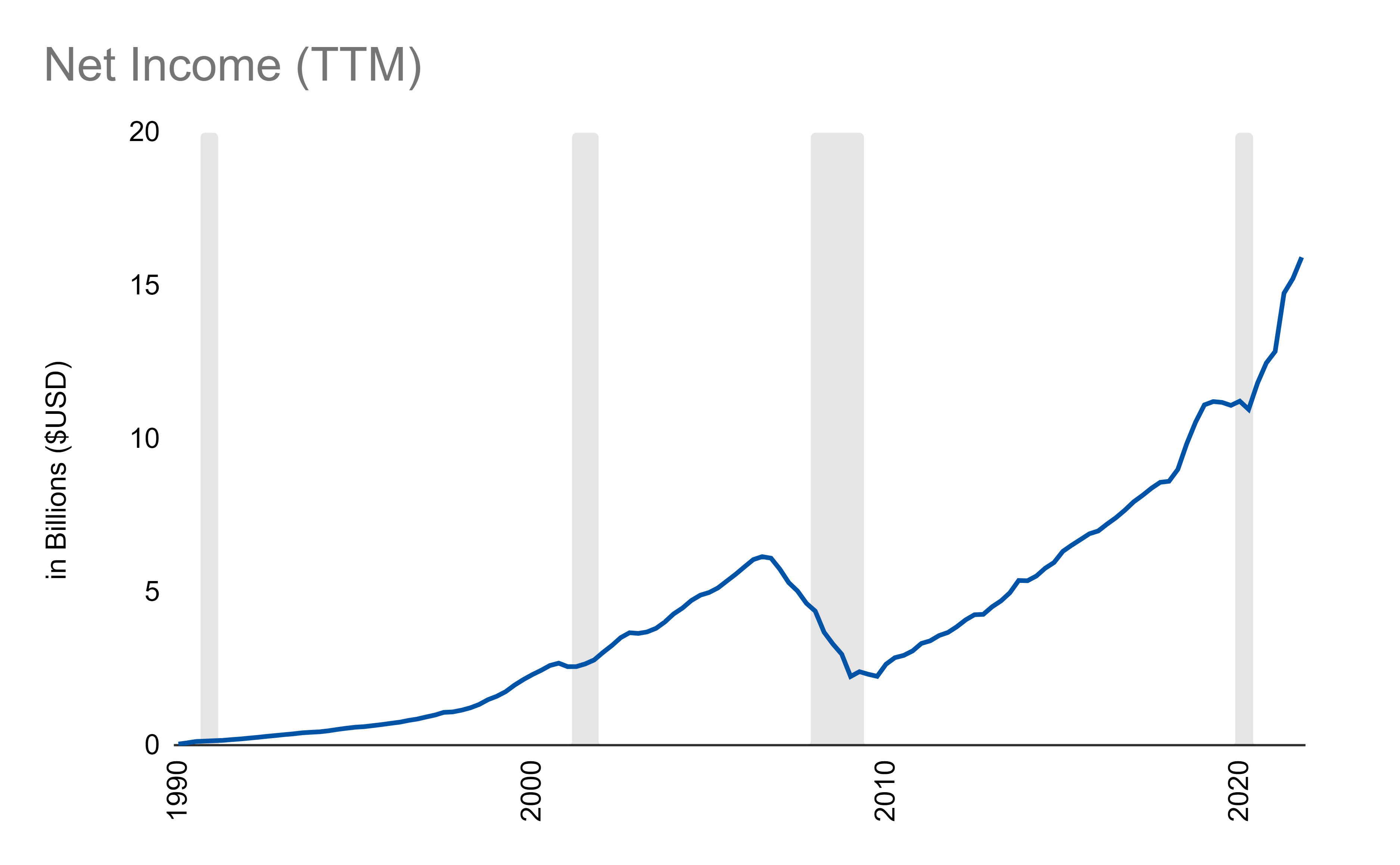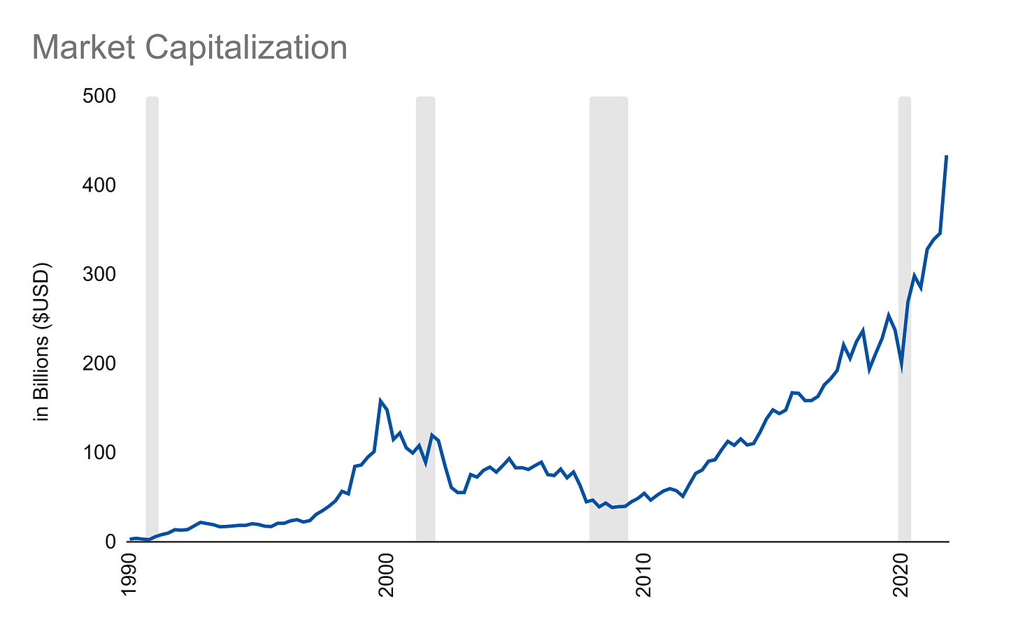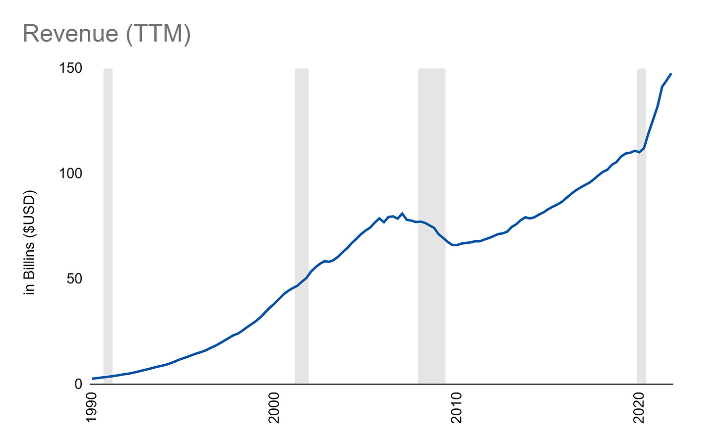 Home Depot’s strong profitability, solid credit, and relatively reasonable valuation stand out here. In terms of market capitalization, it has done extremely well lately: