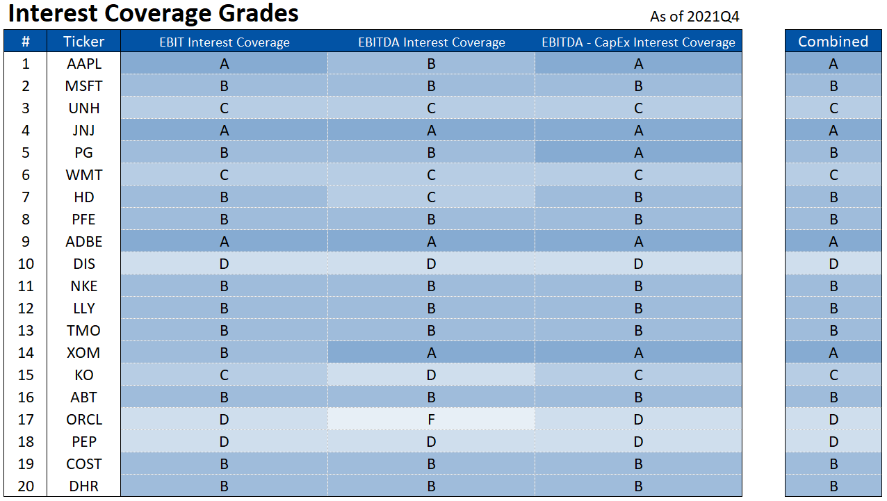 Let’s take a look at the three metrics that comprise the interest coverage domain: