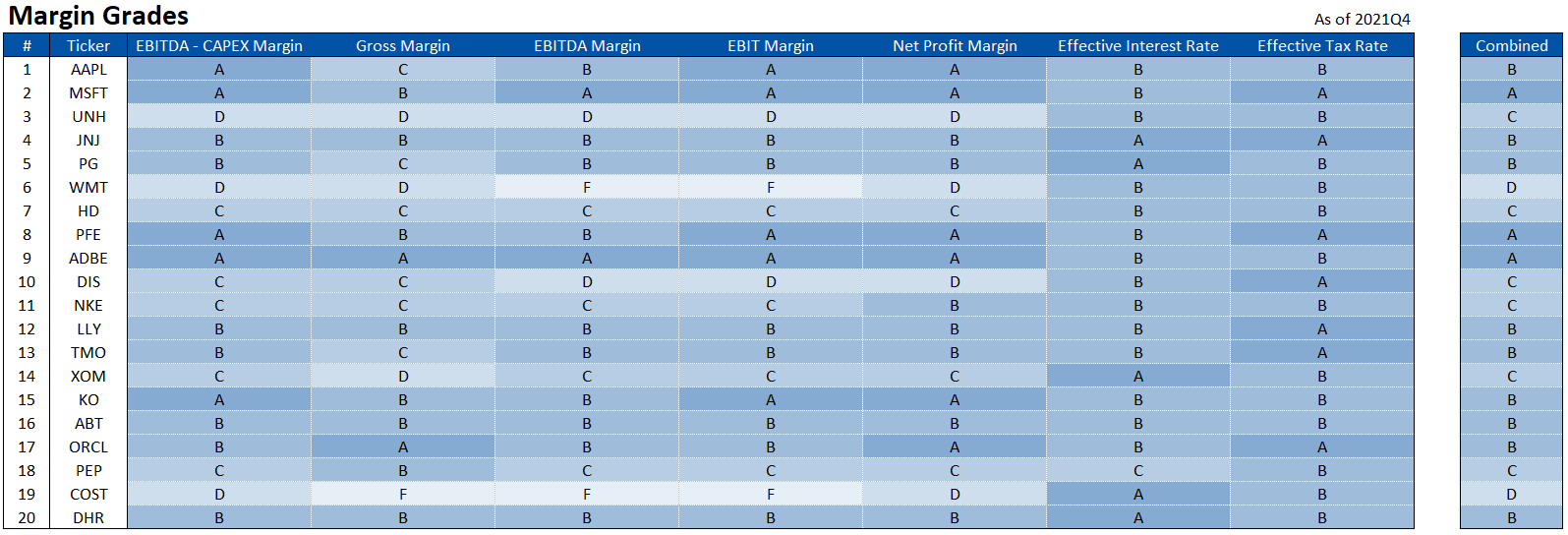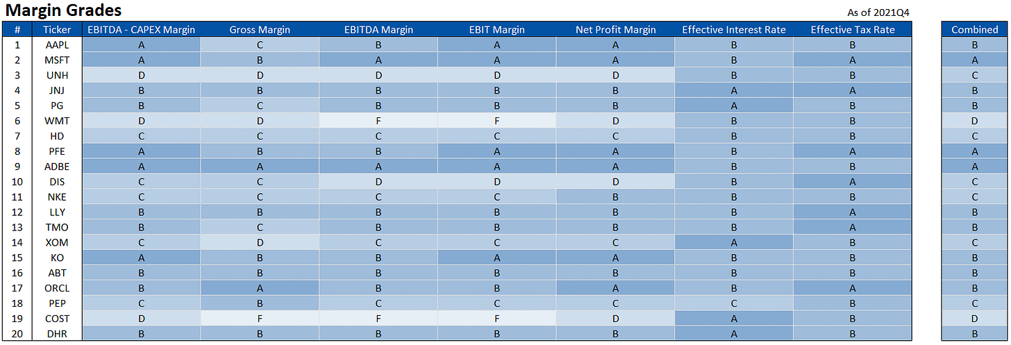 Another set of metric grades today, this time related to margin: