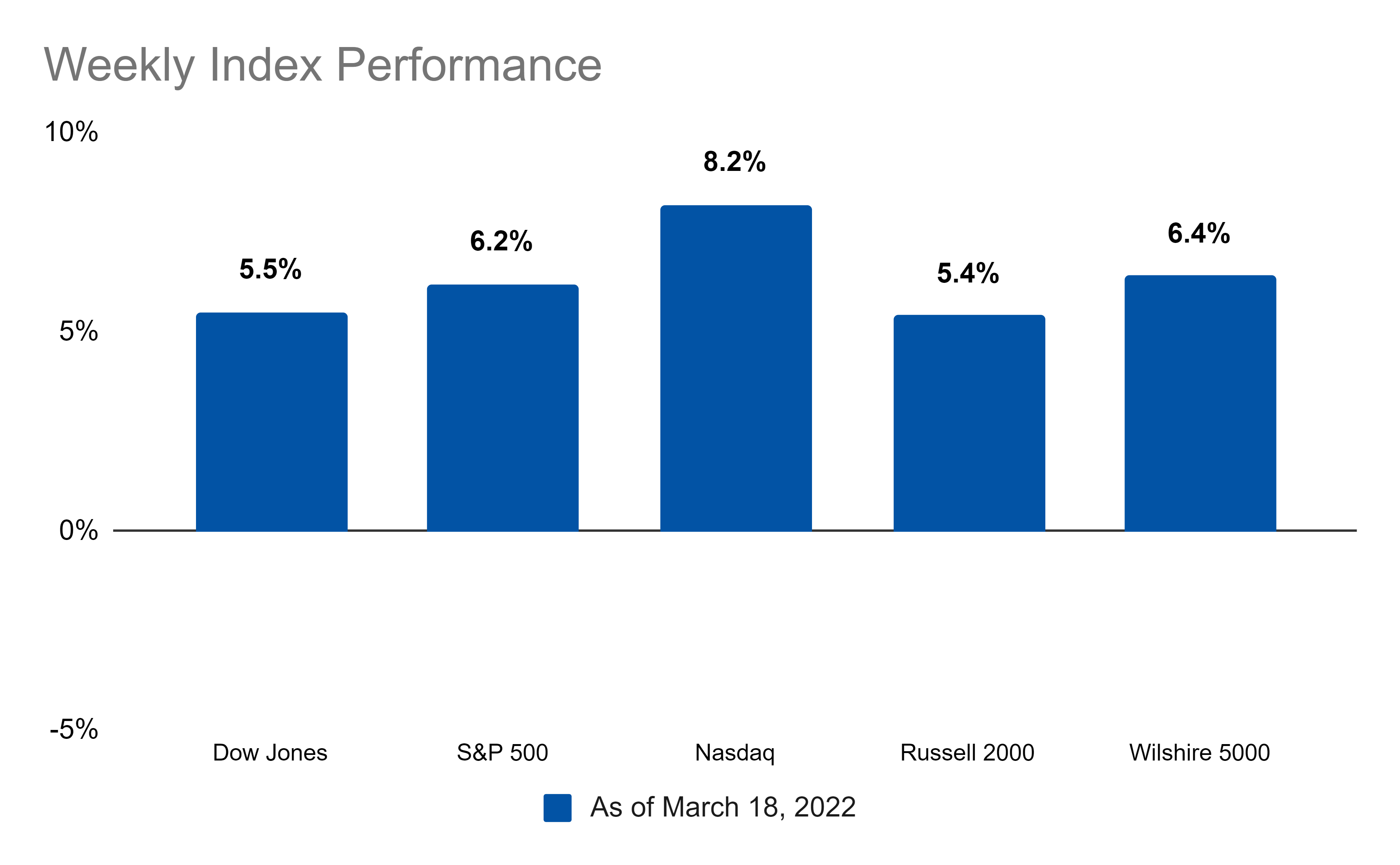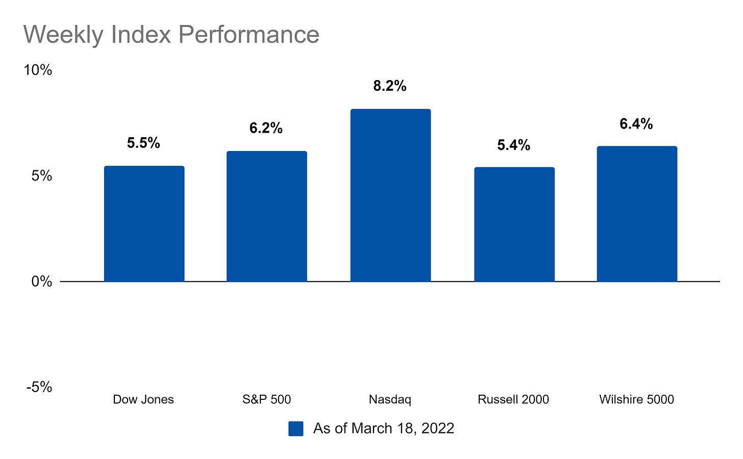 Digging into stocks from an index perspective, all of the major indices were up big on the week: