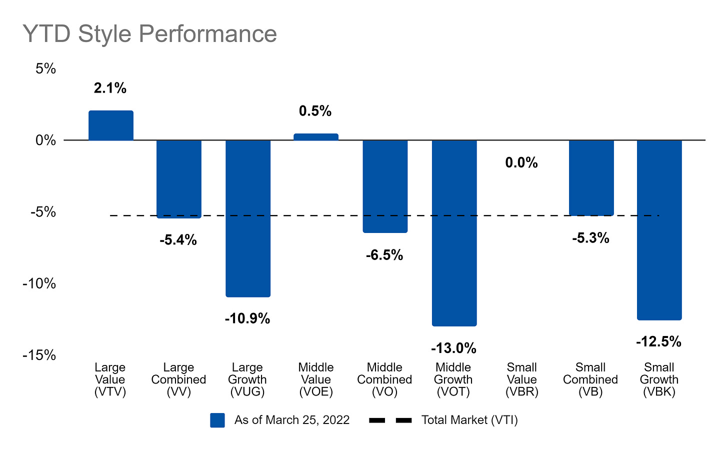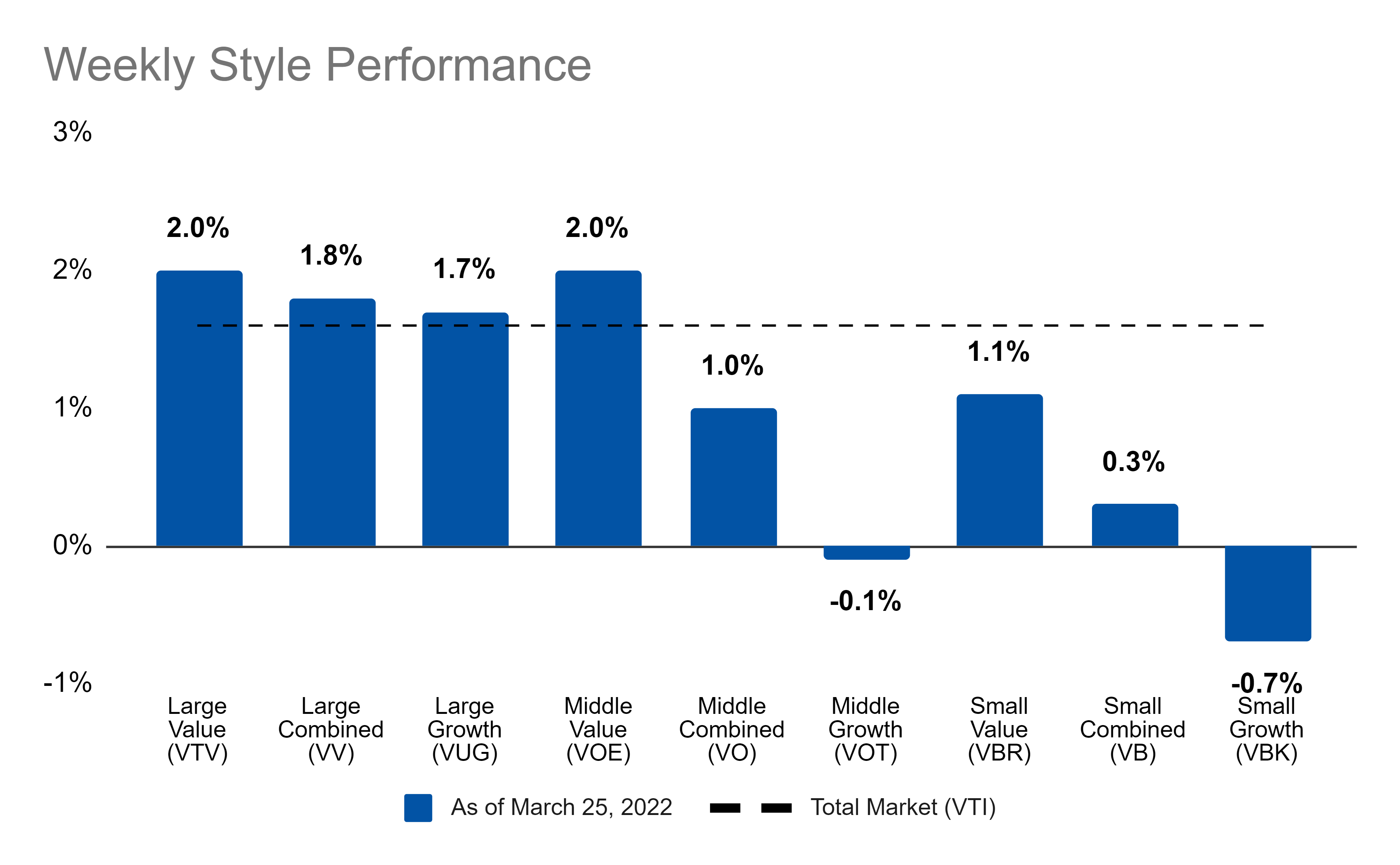 Almost all stock styles finished the week positive: