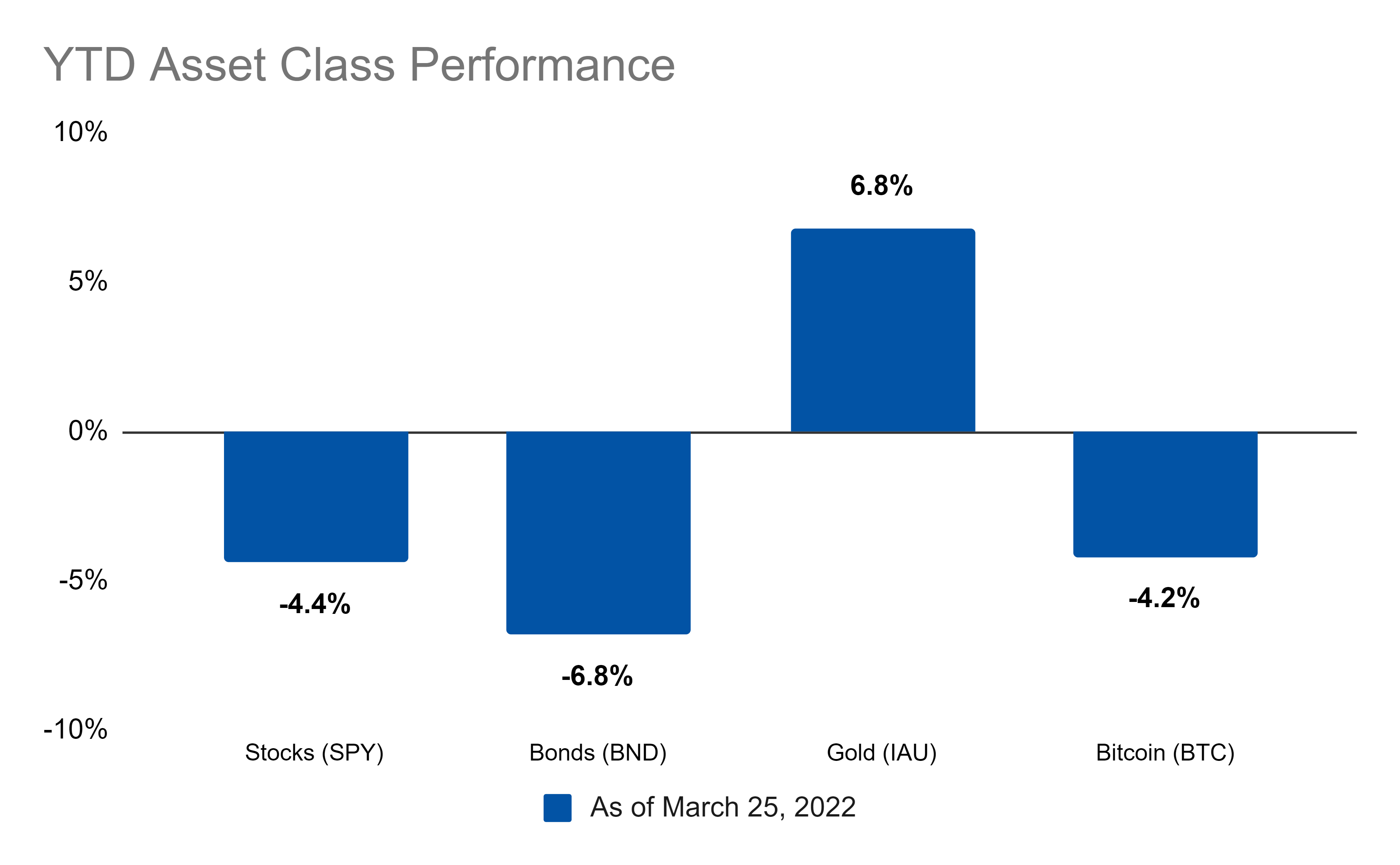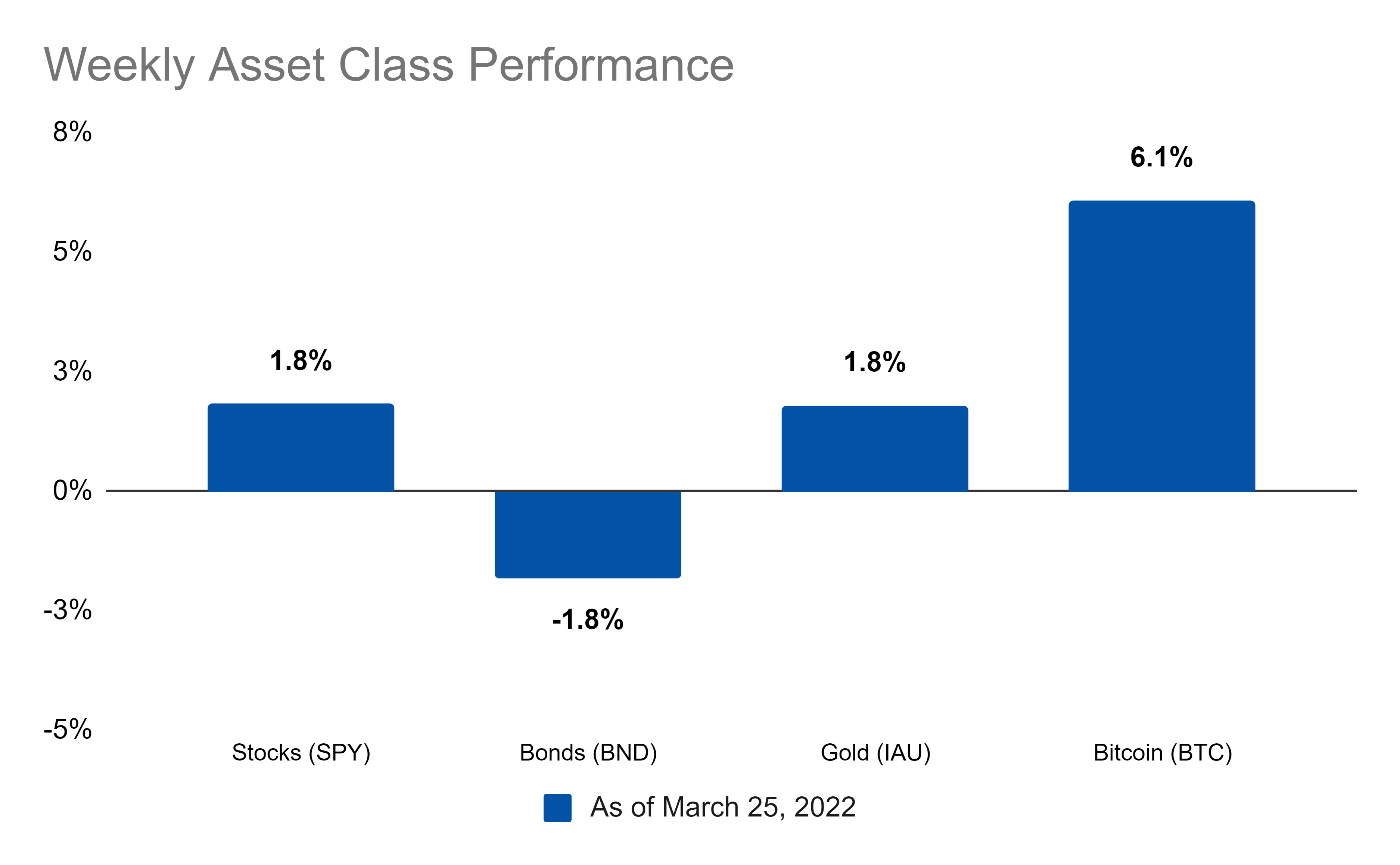 Stocks, gold, and Bitcoin ended the week positively while bonds were down. As for the year so far, gold is the only winner: