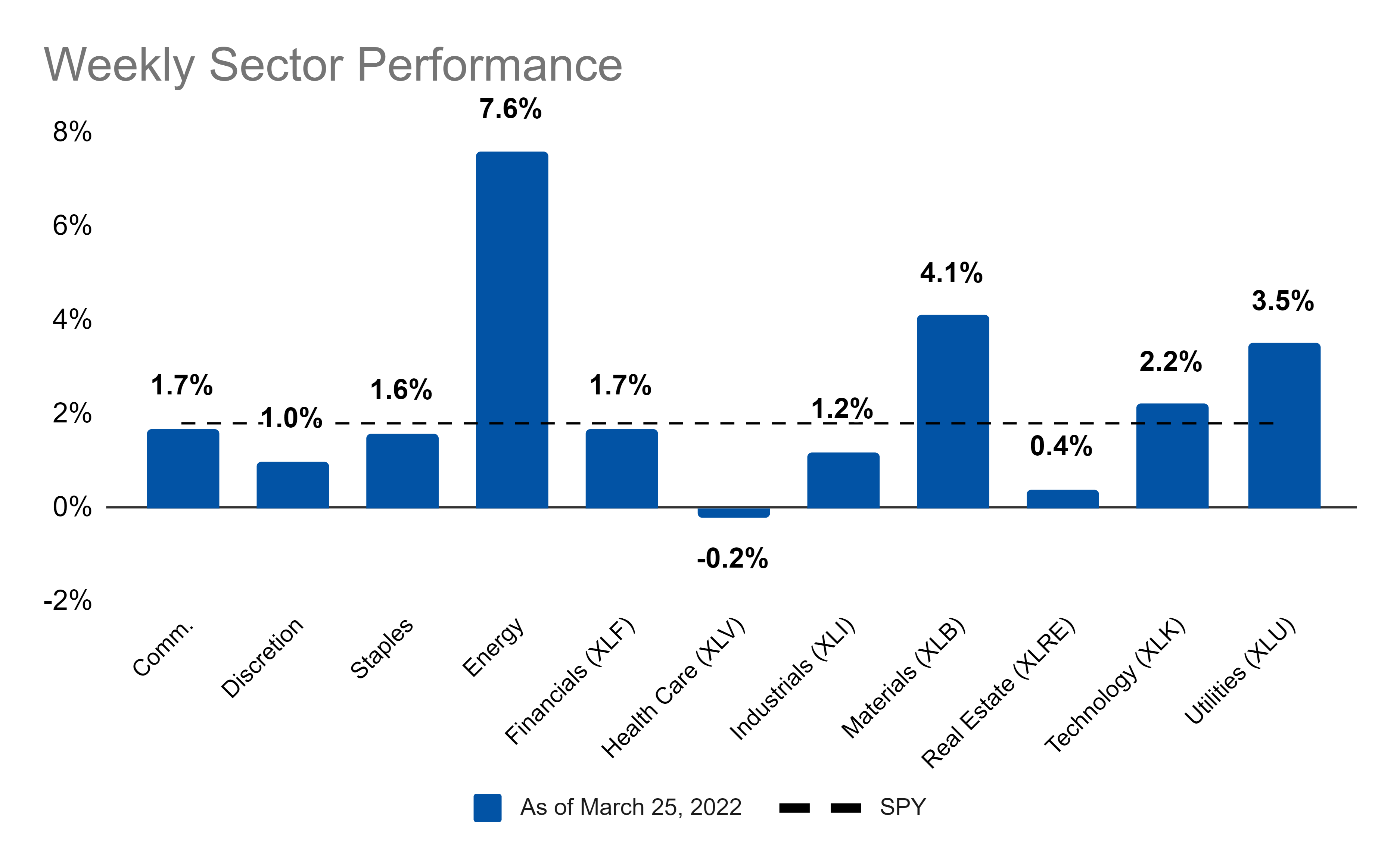 Last week, all but one sector showed gains: