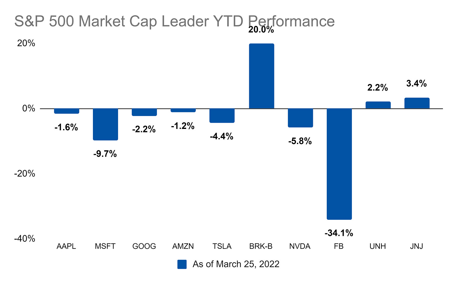 For the year, it’s BRK-B in the lead and FB in last place: