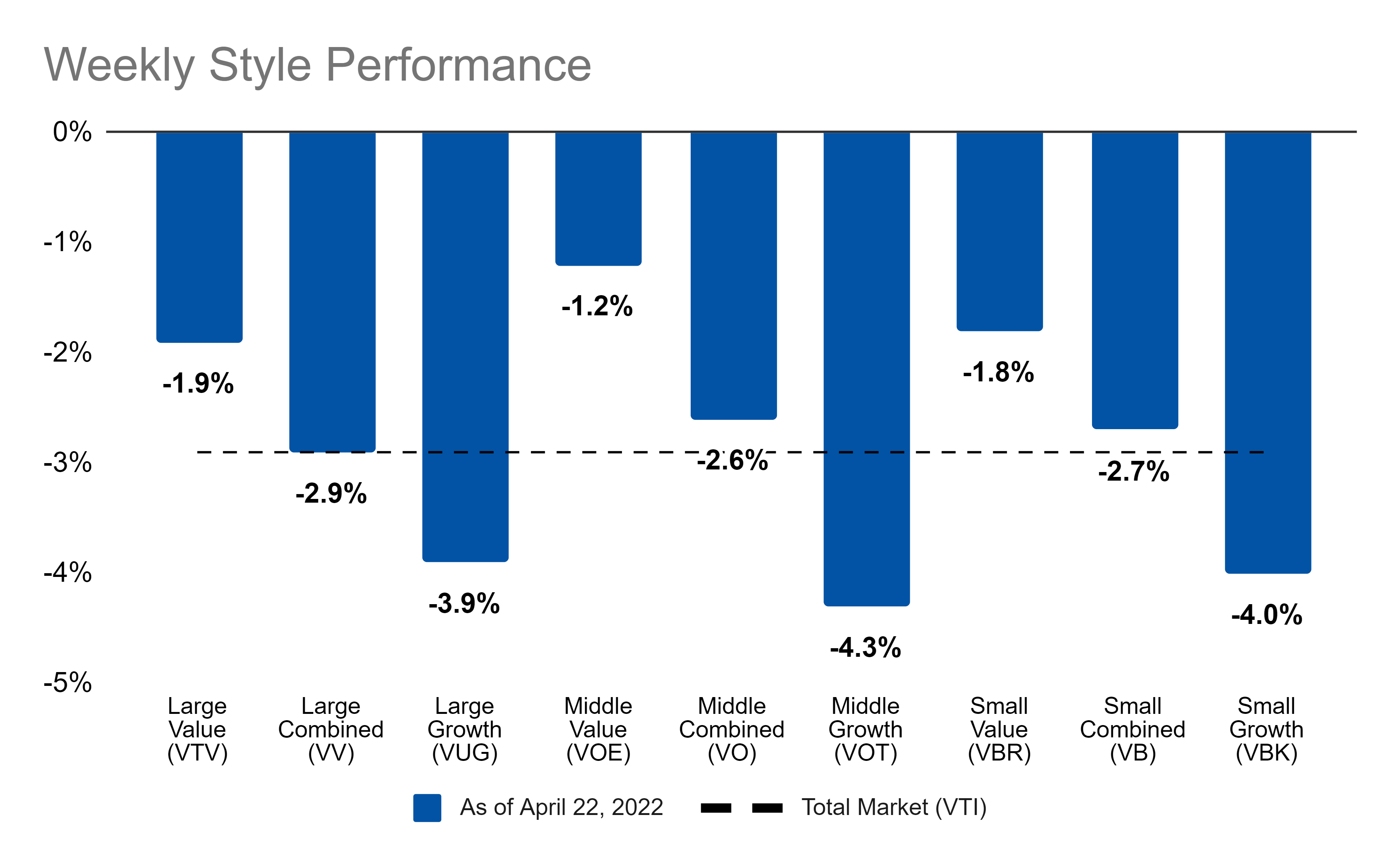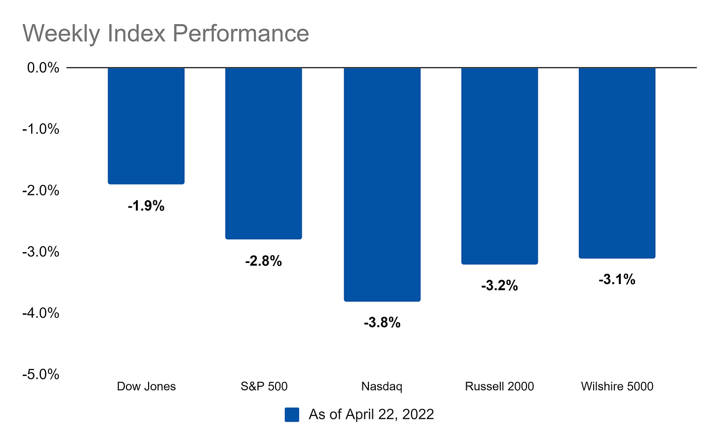 Digging into stocks from an index perspective, all of the major indices were down on the week: