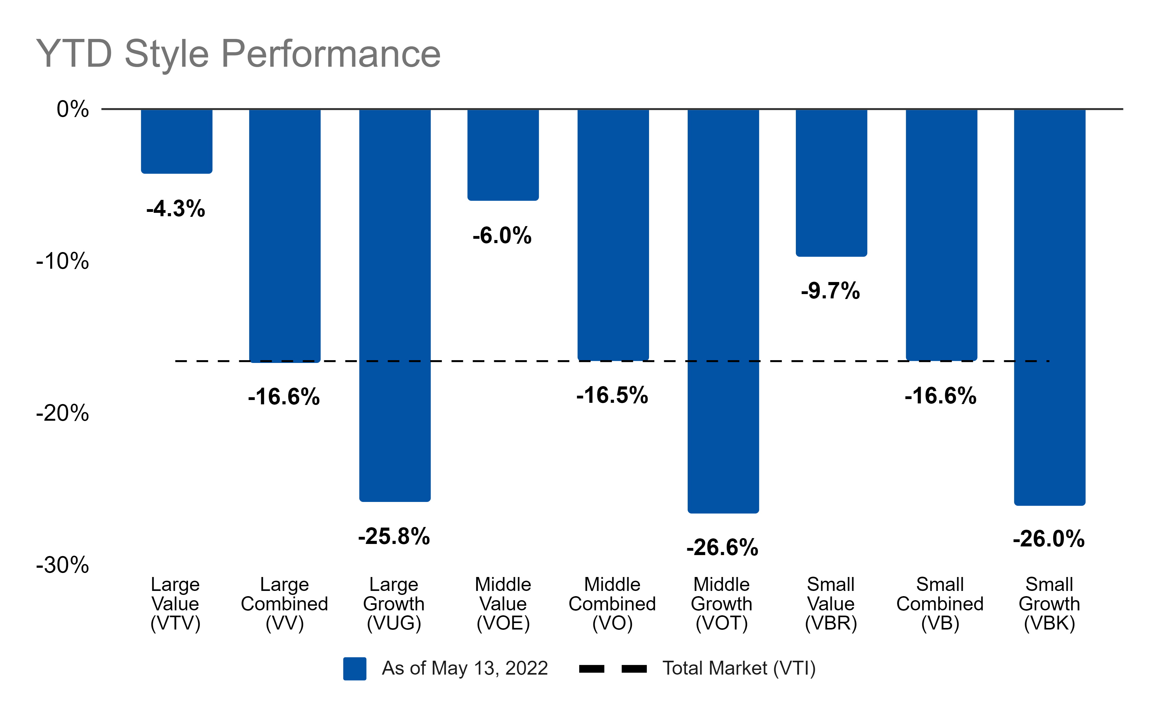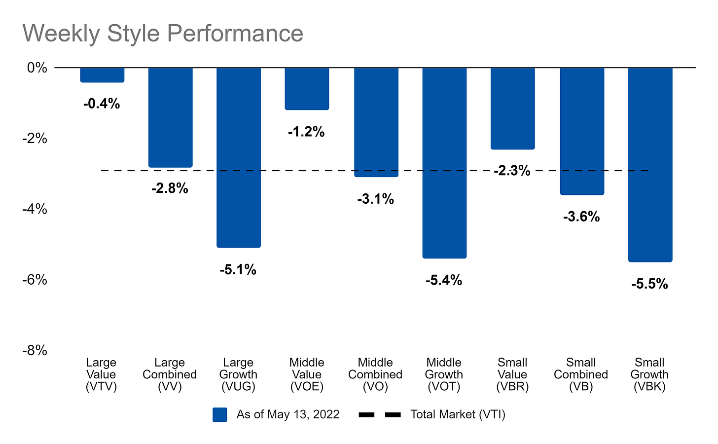 In terms of size, large caps beat small caps last week. For style, value outperformed growth: