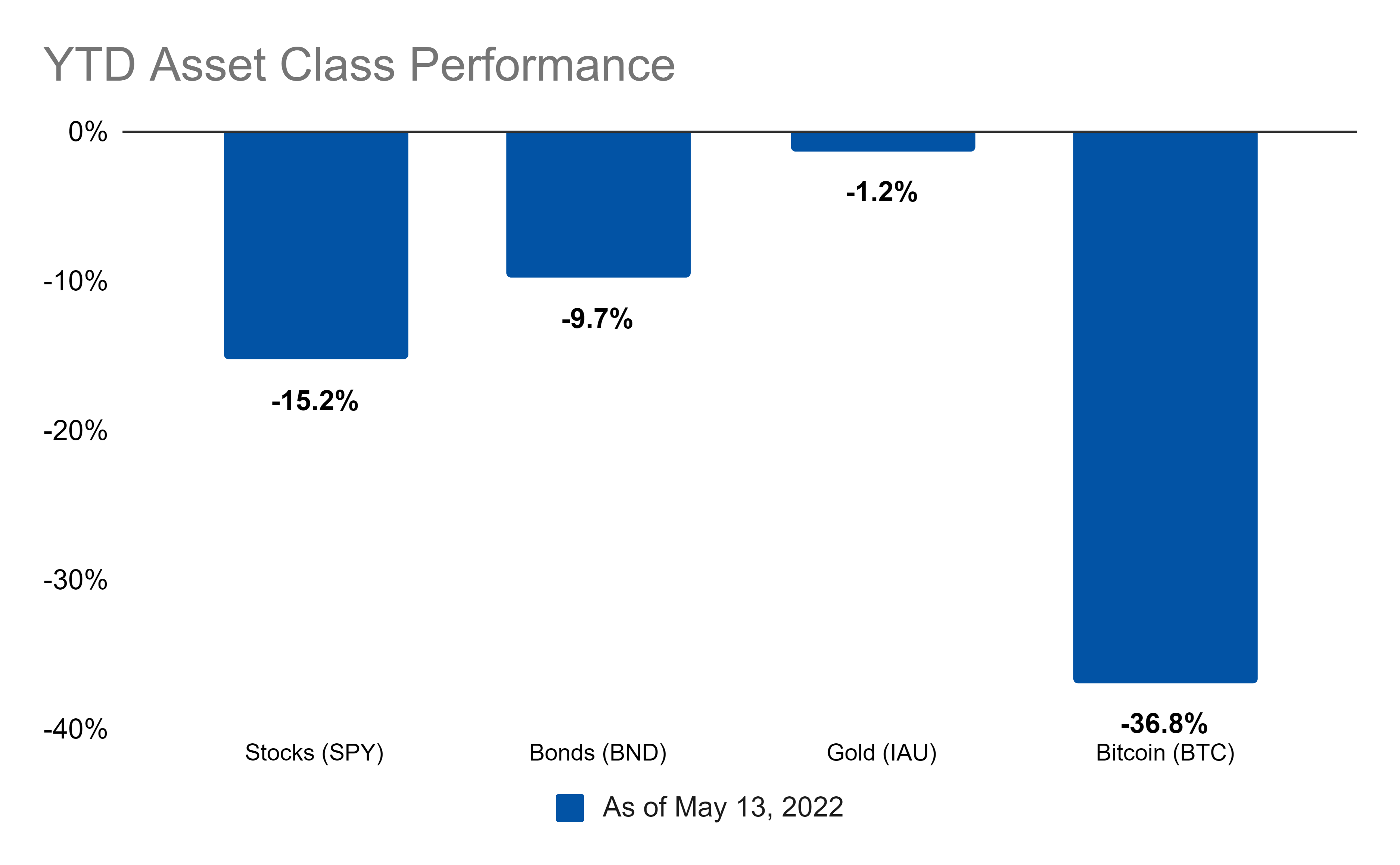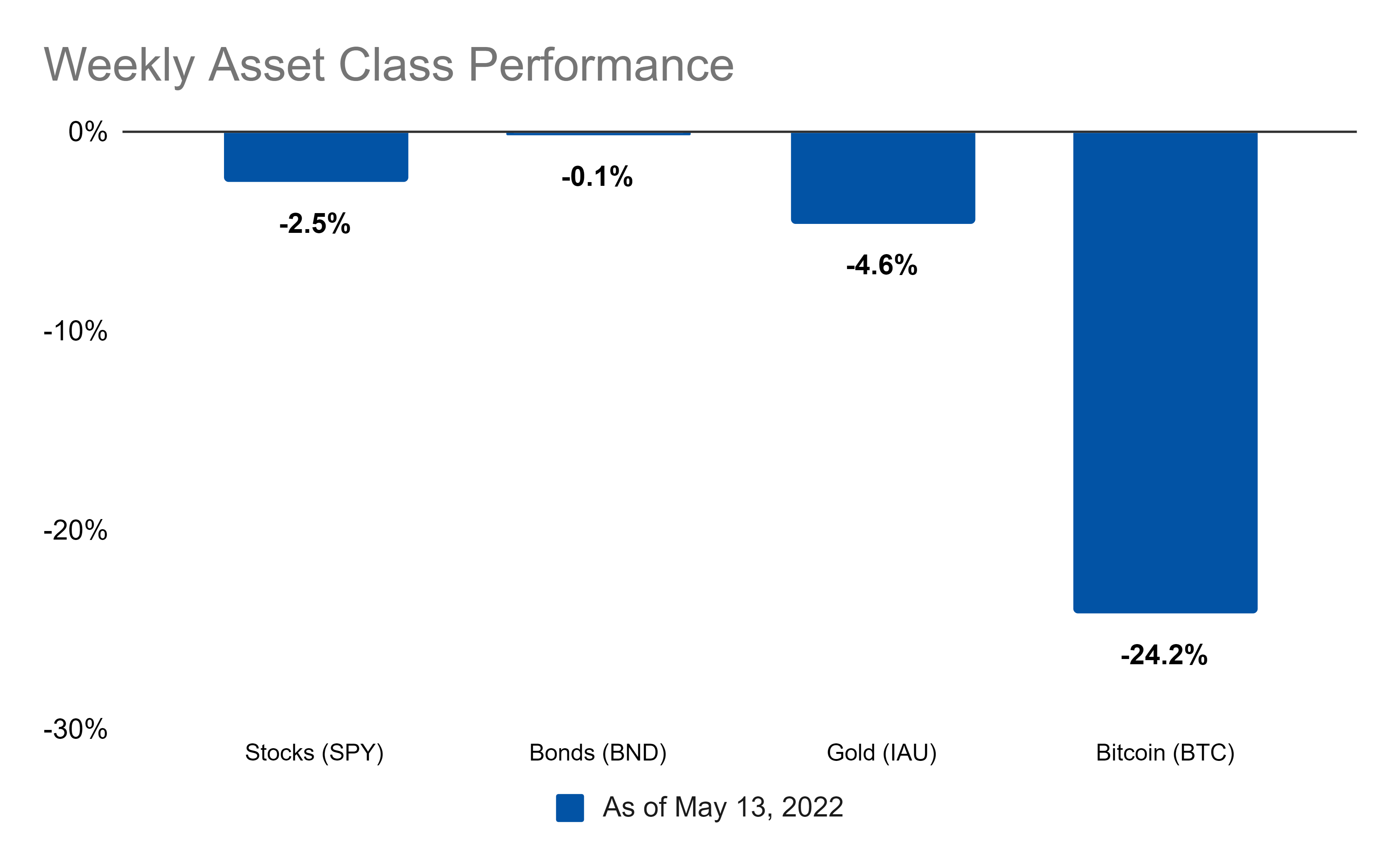 Stocks, bonds, gold, and Bitcoin ended the week down. Bitcoin, in particular, way way down.
