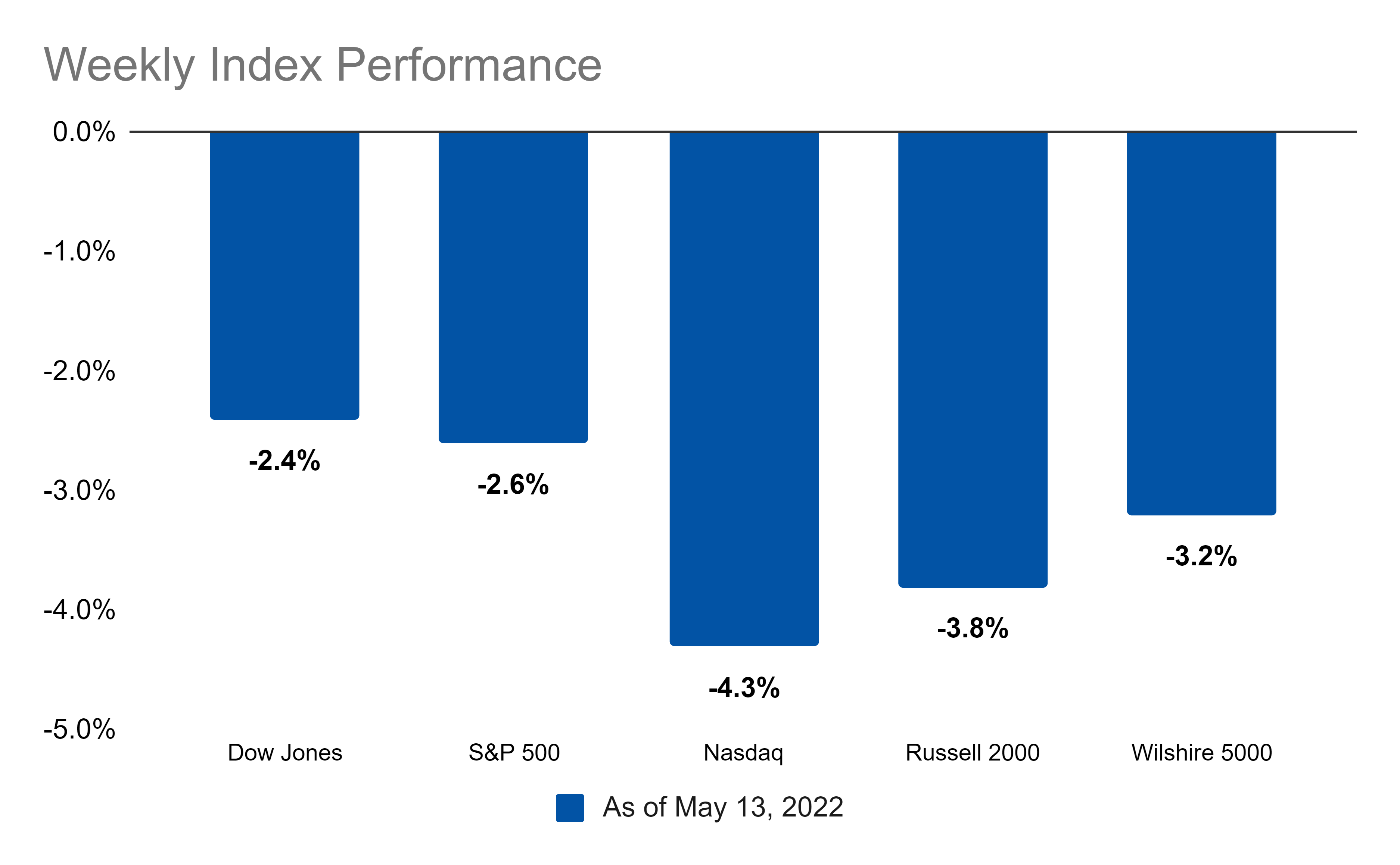 Digging into stocks from an index perspective, all of the major indices were down on the week: