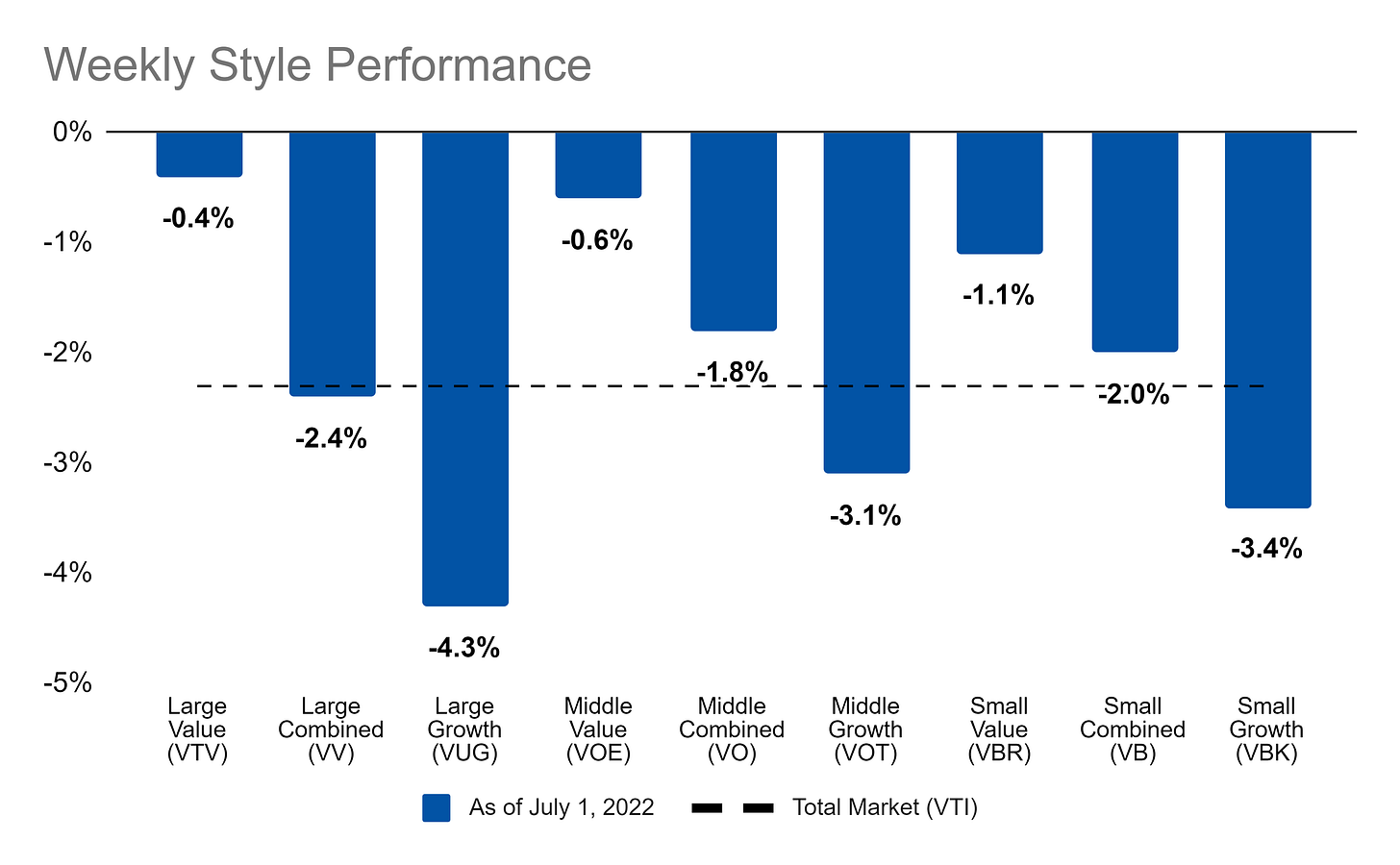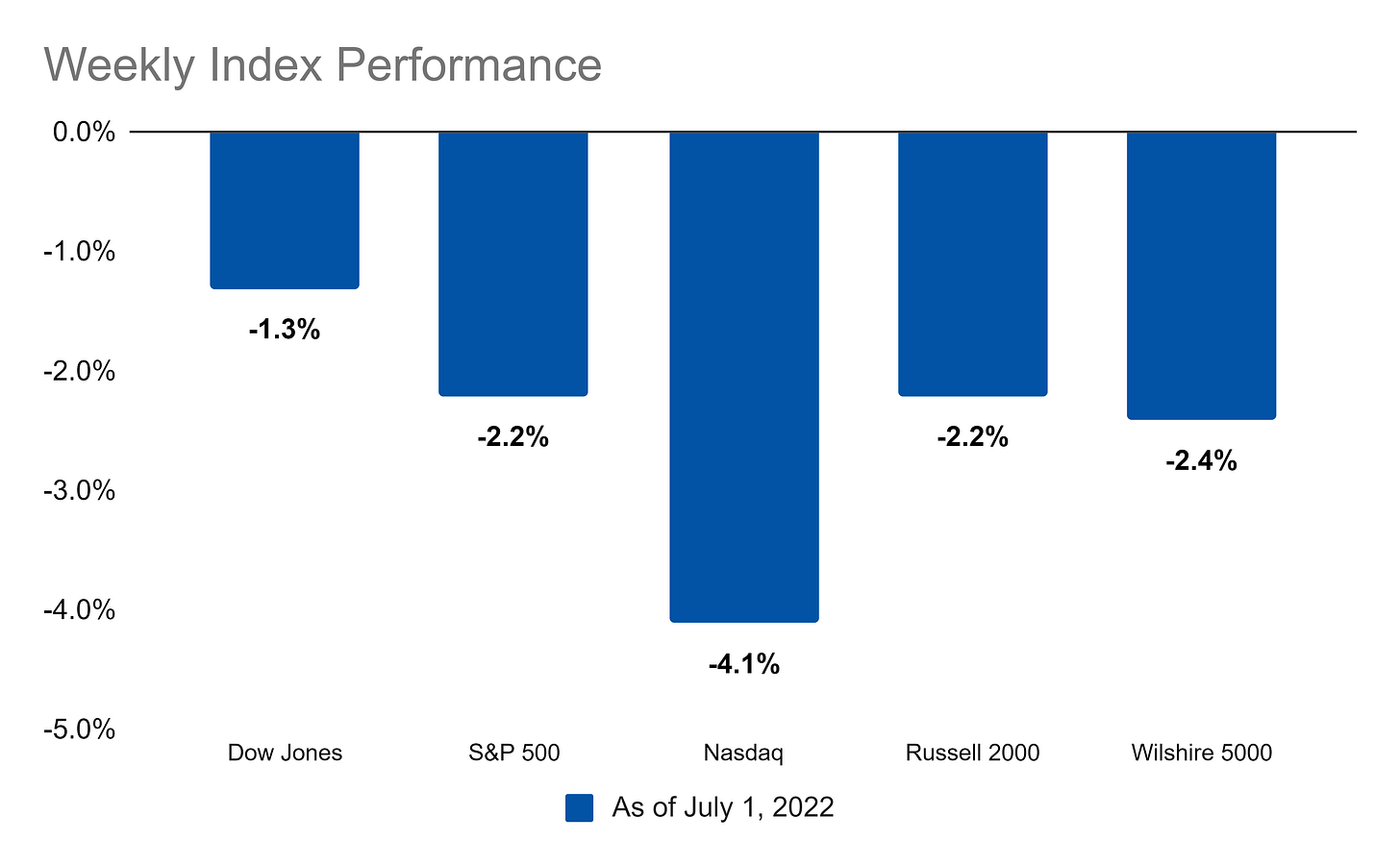 Digging into stocks from an index perspective, all of the major indices were down last week: