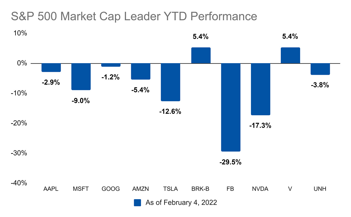 So far this year, it’s BRK-B and V in the lead and FB in last place: