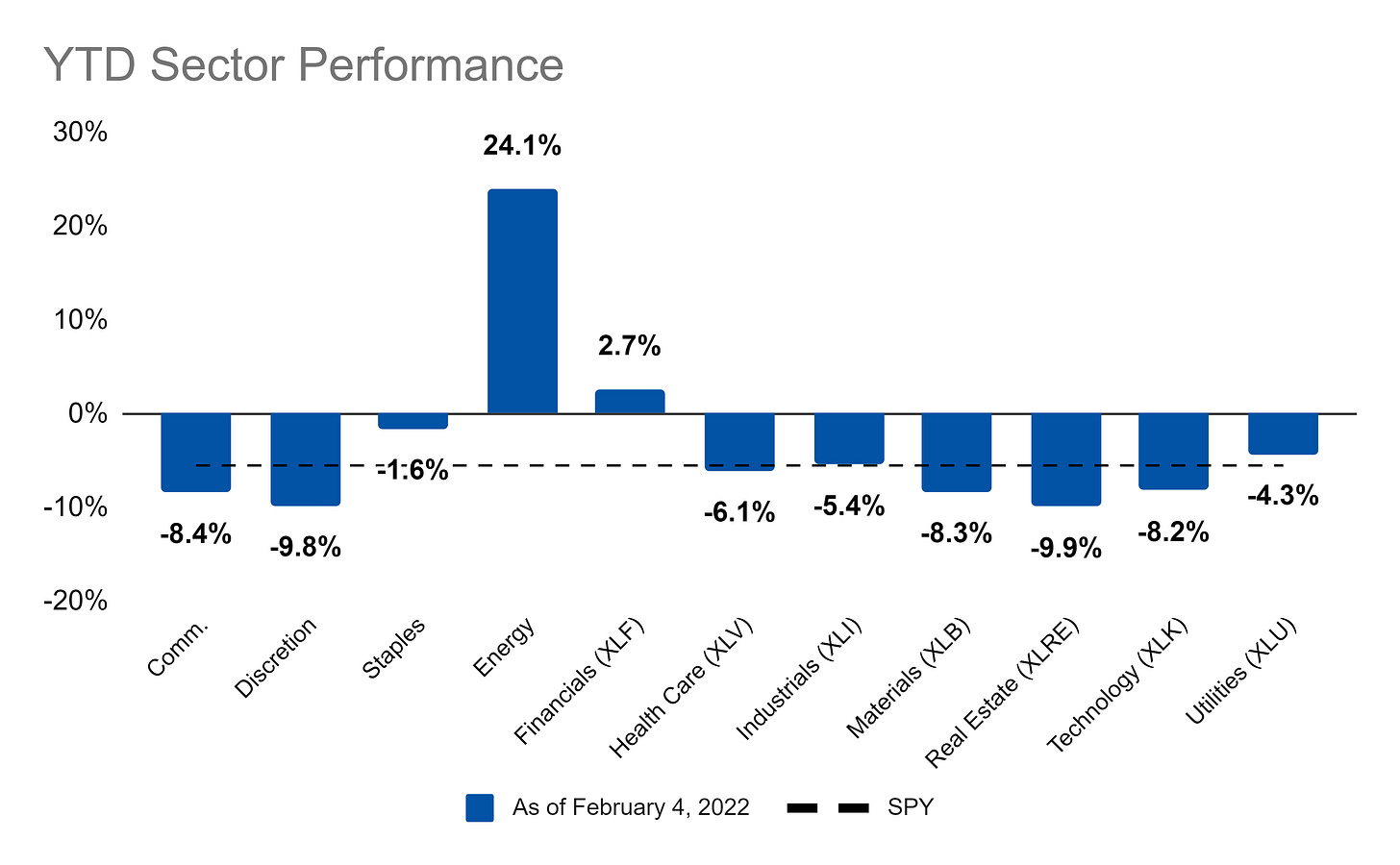 Last week, only the energy sector was positive on the year. Now, financials have joined in on the green territory: